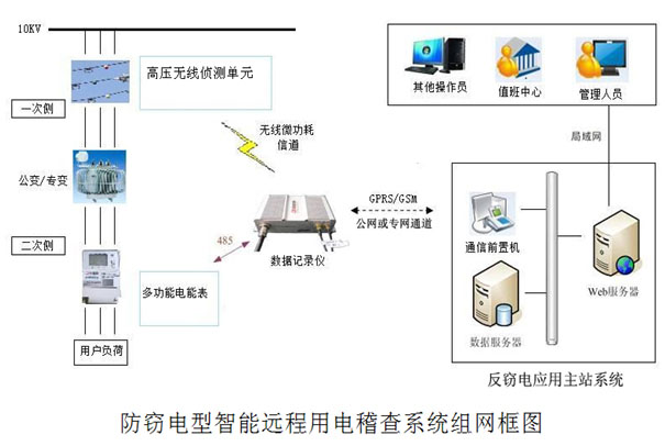 主要特點: >高壓無線偵測單元對線路一次側電流進行監(jiān)測,并通過無線通訊方式傳送至數(shù)據(jù)記錄儀。 >數(shù)據(jù)記錄儀與二次側計量表計通訊, 實時記錄并監(jiān)測電壓回路、電流回路,當監(jiān)測到欠壓、失壓、分流、開路、移相、強磁干擾、失電等異�,F(xiàn)象時,通過短信方式發(fā)出告警信息給設定的手機。 >數(shù)據(jù)記錄儀通過監(jiān)測一次實際負荷和計量負荷, 偏差大于定值時,則判定該用戶用電負荷異常,此時遠程稽查儀通過短信方式發(fā)出告警信息給設定的手機。 >手持終端與數(shù)據(jù)記錄儀通訊, 對相關的現(xiàn)場參數(shù)進行設置,實時查看數(shù)據(jù)記錄儀采集的數(shù)據(jù),可以判定CT變比的功能。 >專用后臺管理軟件,對多臺記錄儀進行實施管理,構成防竊電系統(tǒng),對系統(tǒng)良性運行具有重大意義。 主要技術指標: >標準規(guī)約(DL/T645-1997-2007) >GPRS/GSM/(專網(wǎng)/公網(wǎng))接口 >RS485數(shù)據(jù)接口,用于抄表 >無線射頻通訊接口,2.4G >一次電流0-500A,精度2.0級 >二次電流0-6A,精度0.5級 >二次電壓0-450A,精度0.5級 >高壓無線偵測單元與數(shù)據(jù)記錄儀通訊距離30米 >工作溫度-25℃ ~ +75℃ >裝置組成: 1.數(shù)據(jù)記錄儀; 2.高壓無線偵測單元; 3.手持終端(選配); 4.高壓鉗型電流表(選配); 5.智能線束(含二次CT); 6.專用裝卸工具; 7.天線及手機卡(含1年數(shù)據(jù)服務費); 8.專用便攜箱組成。